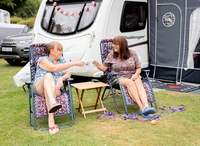 Our tree-lined Touring Park covers an area of 15 acres of flat, well-drained grass surrounded by hedges and trees. It is split into four different fields that are divided into several sheltered areas containing marked pitches. We welcome tourers, tents & motorhomes and have grass electric, hard-standing and premium multi-service and RV pitches available.