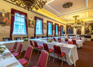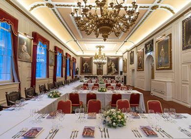 All bookings gain exclusive hire of the magnificent Council Chamber, which is an ideal backdrop for ceremonies of all sizes. Flooded with natural daylight, surrounded by royal portraits of the last five centuries and lit by the glittering chandeliers (on loan from the Royal Collection Trust on behalf of The Monarch), the Council Chamber is a stunning room in which to tie the knot or host an event.