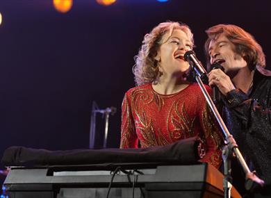 Kate Hudson and Hugh Jackman who star in Song Sung Blue (12A). Based on a true story, the film follows two down-on-their-luck musicians who form a joyous Neil Diamond tribute band.